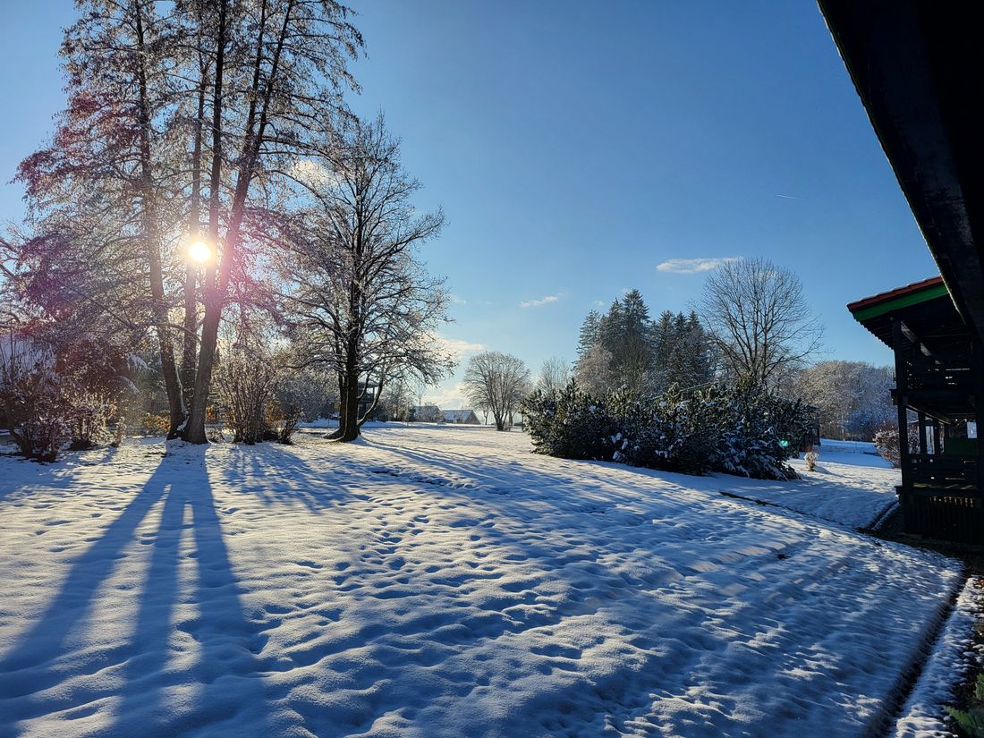 v Die Unterkunft Ferienwohnung Schäfer im ruhigen, naturverbundenen Ferienpark Vorauf, Siegsdorf besticht durch Gartenblick und Übernachtungsmöglichkeiten mit einem Garten.